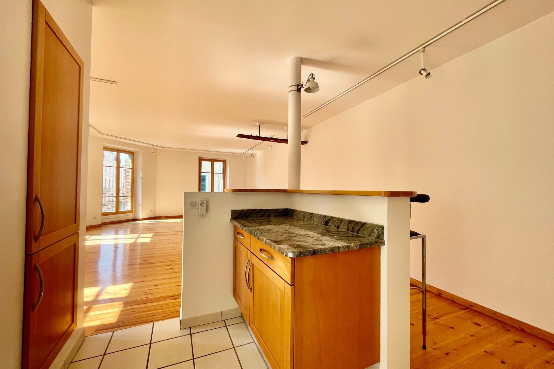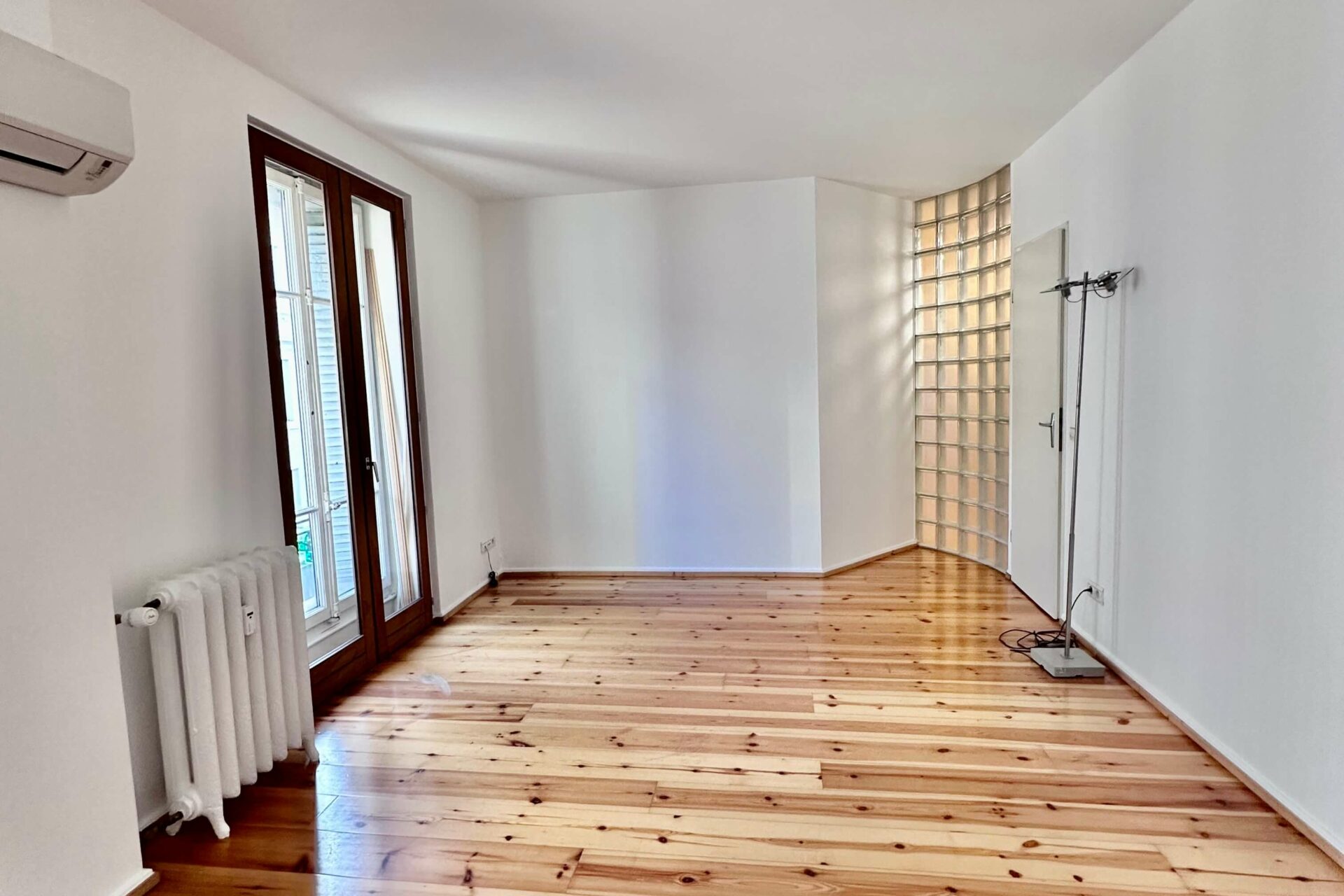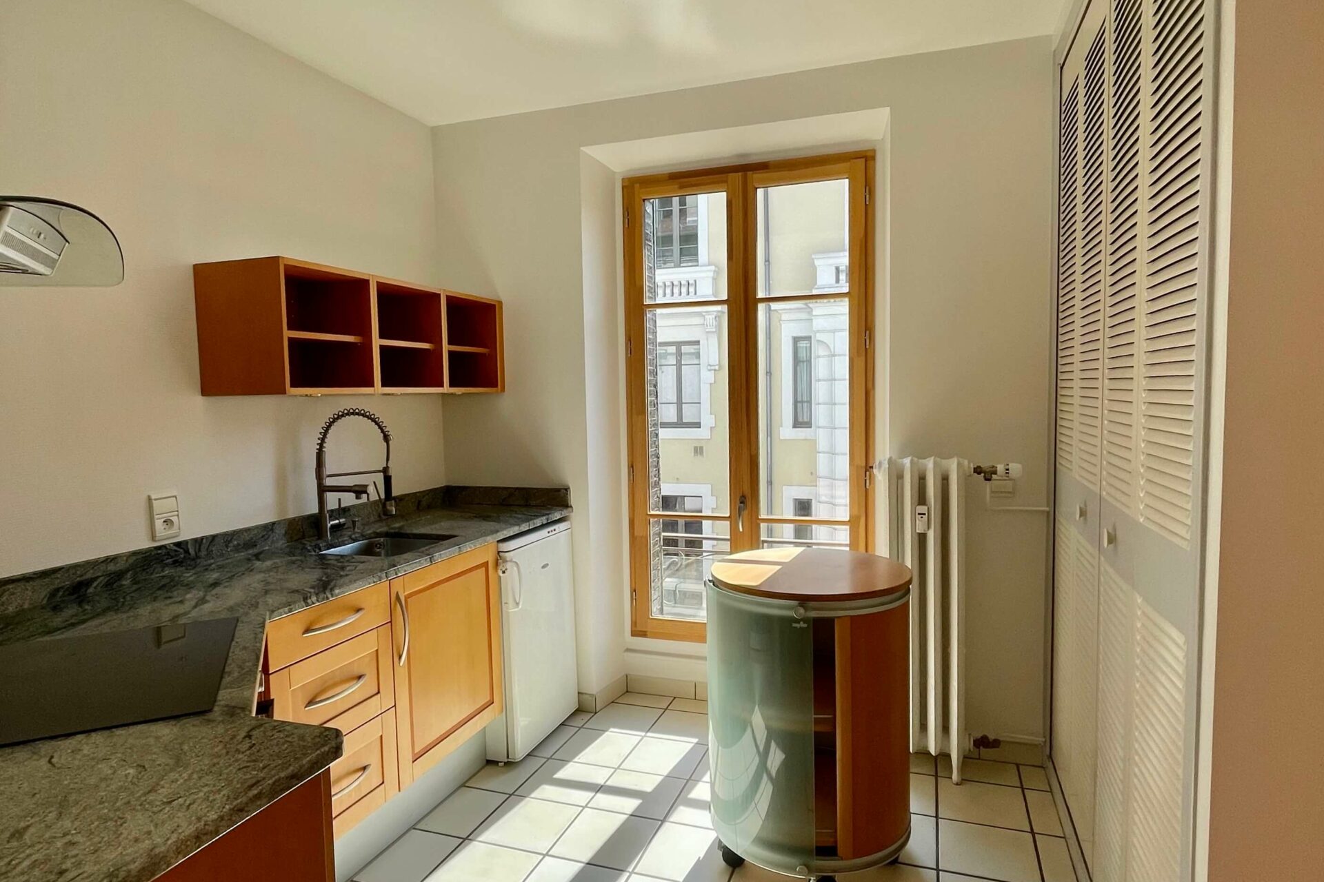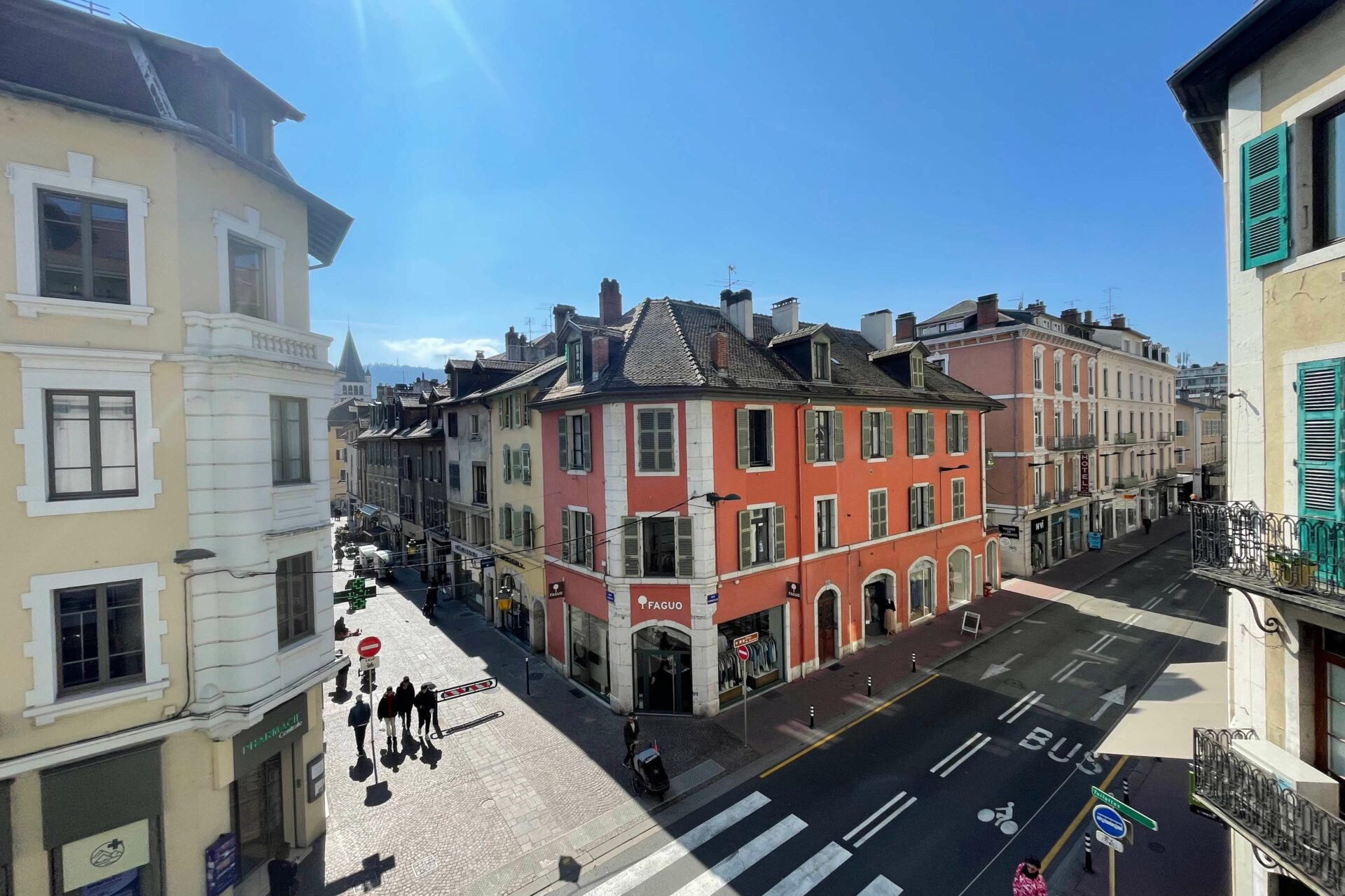 Situé au 2ᵉ étage, ce magnifique appartement de 110 m² à la vue dégagée sur la ville et ses rues piétonnes séduit par son authenticité et ses plafonds hauts qui renforcent la sensation d’espace.
